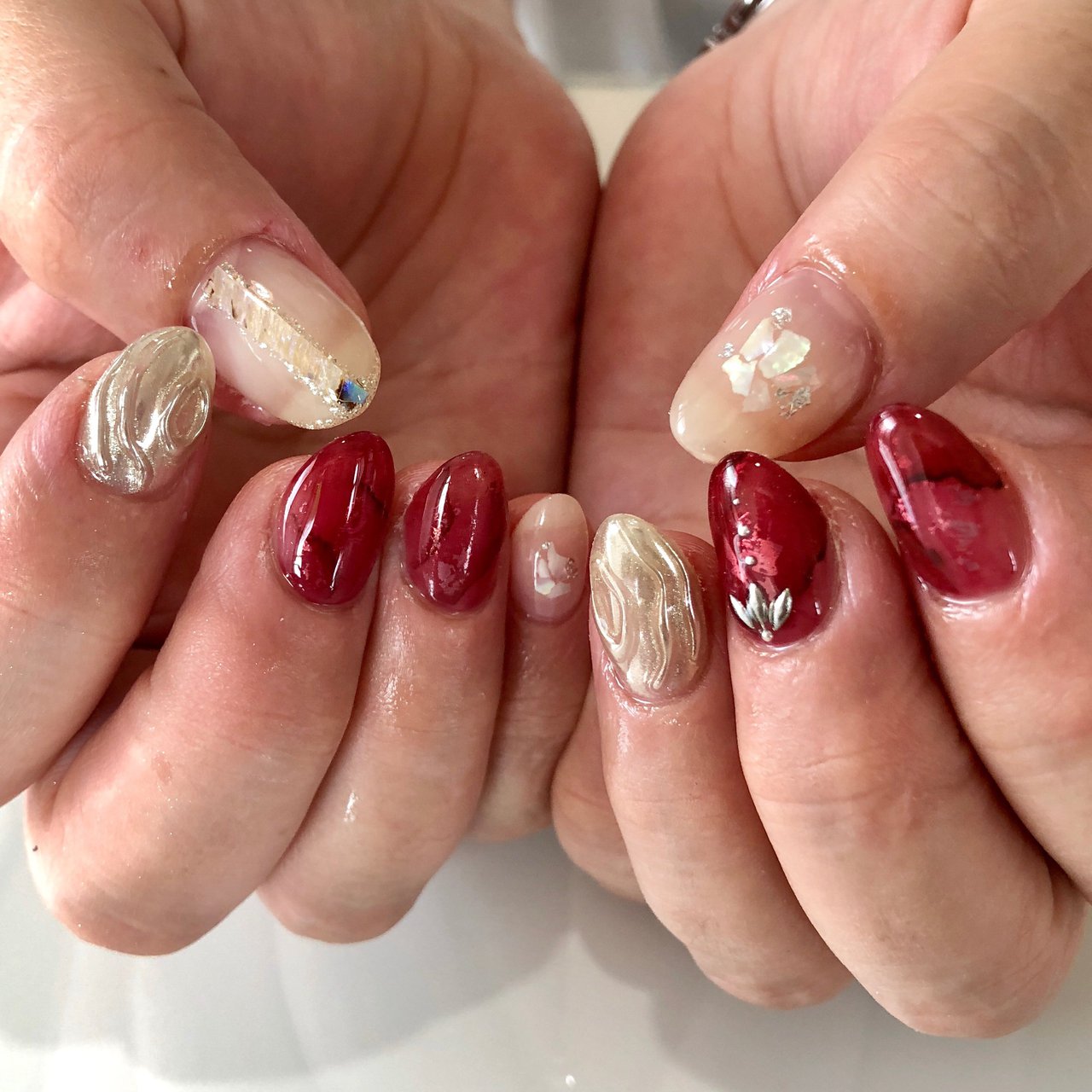 冬 お正月 クリスマス パーティー ハンド Min2nail プライベートサロンのネイルデザイン No ネイルブック ジェルネイル 赤 赤ネイル ネイルデザイン